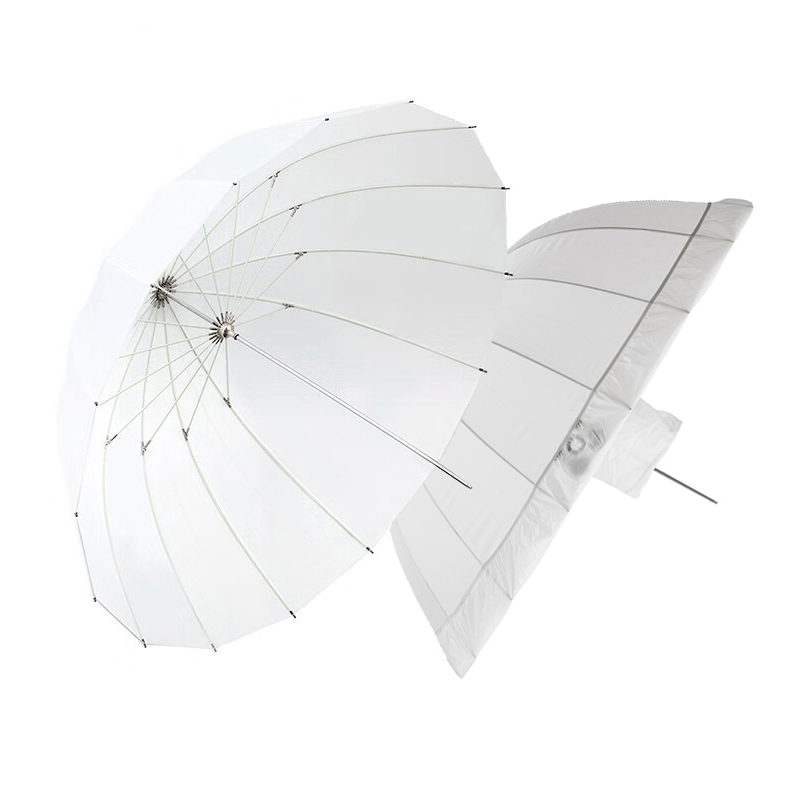 مظلة شفافة عميقة مع دفيوزر من شركة نايس فوتو بمقاس 130 سم . المظلة العميقة تعطي تركيزا أكثرا للضوء وأكثر نعومة . 16 عمود فايبر لمرونة أكثر ومتانة وإنحناء متقن ومشدود . خامة عالية وجودة في التصنيع . تأتي مع حقيبة للحفظ والتنقل .